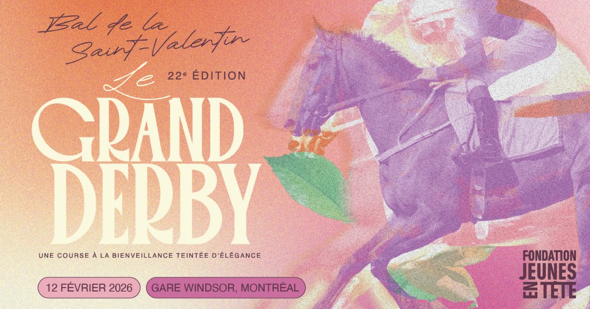 Join us on Thursday, February 12, 2026, at Montreal’s Gare Windsor for a festive evening inspired by the world’s most elegant horse races. In a refined and immersive setting, Le Grand Derby is shaping up to be the must-attend event of the season in support for a vital cause: youth mental health in Quebec.